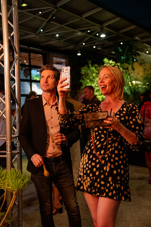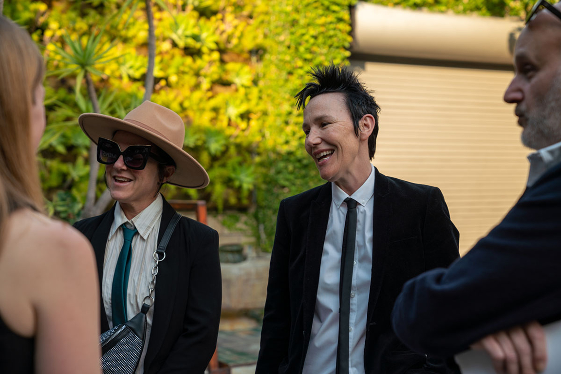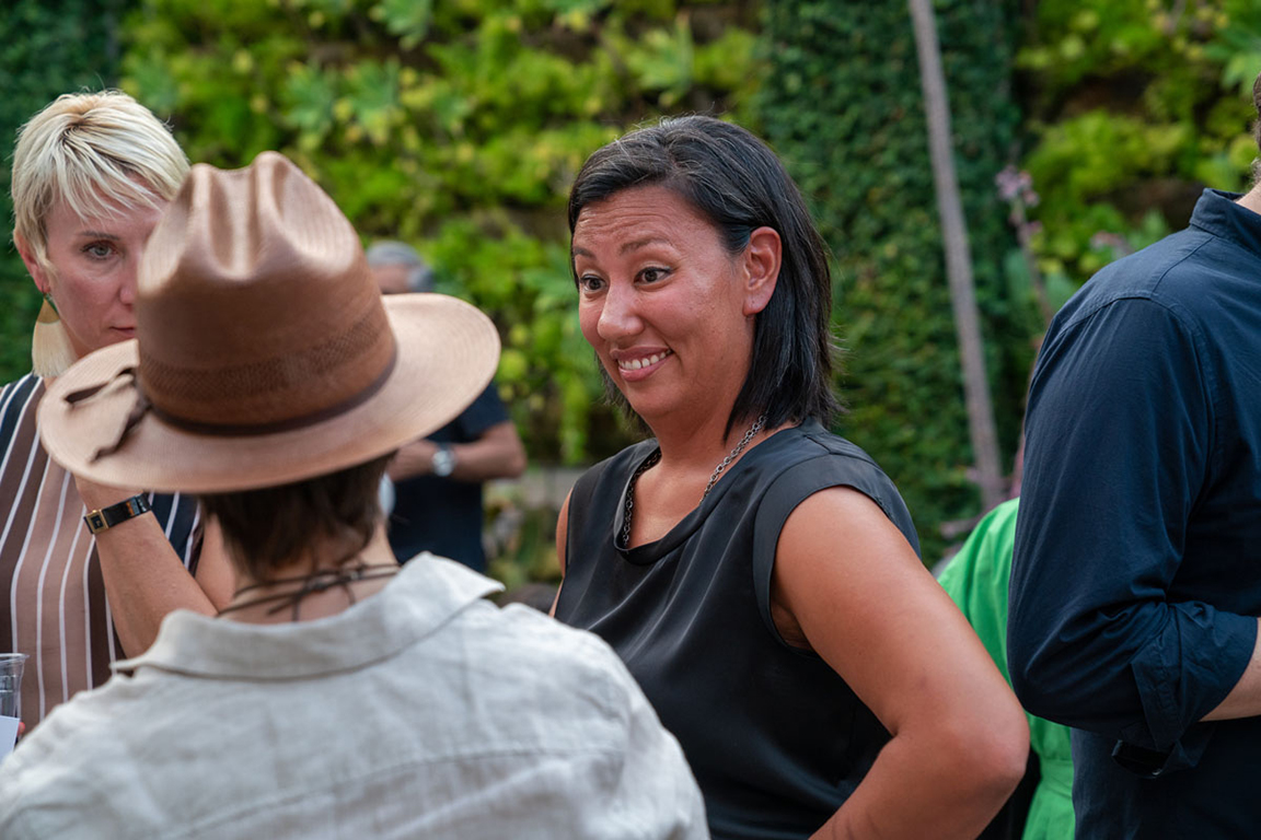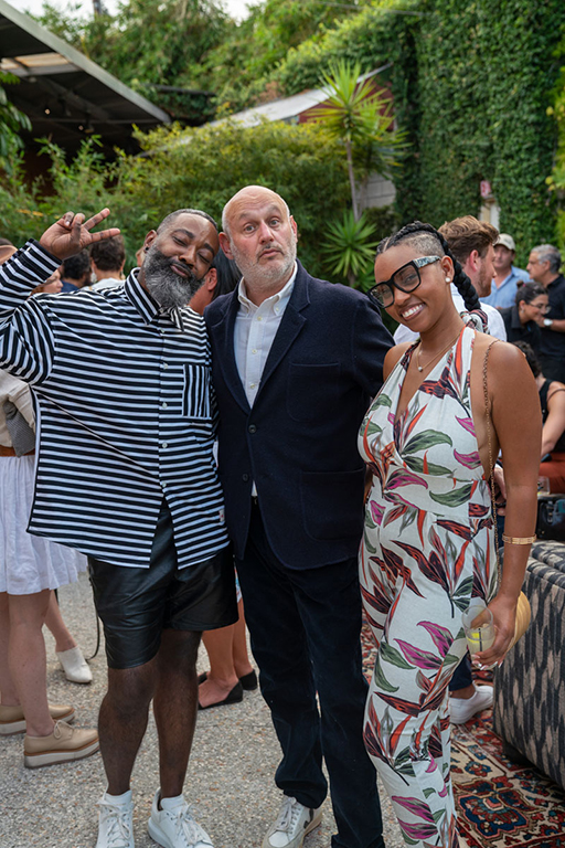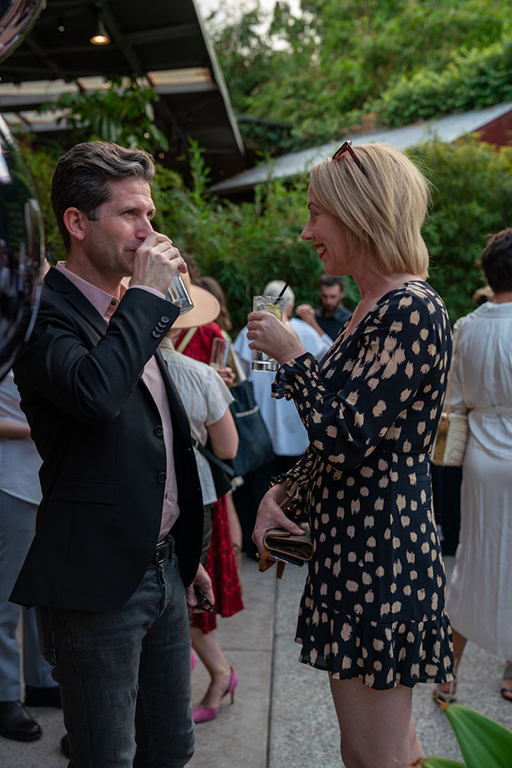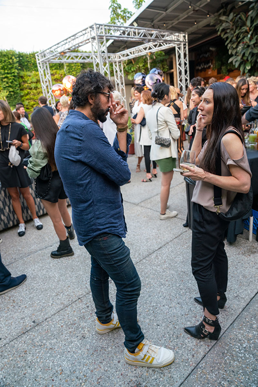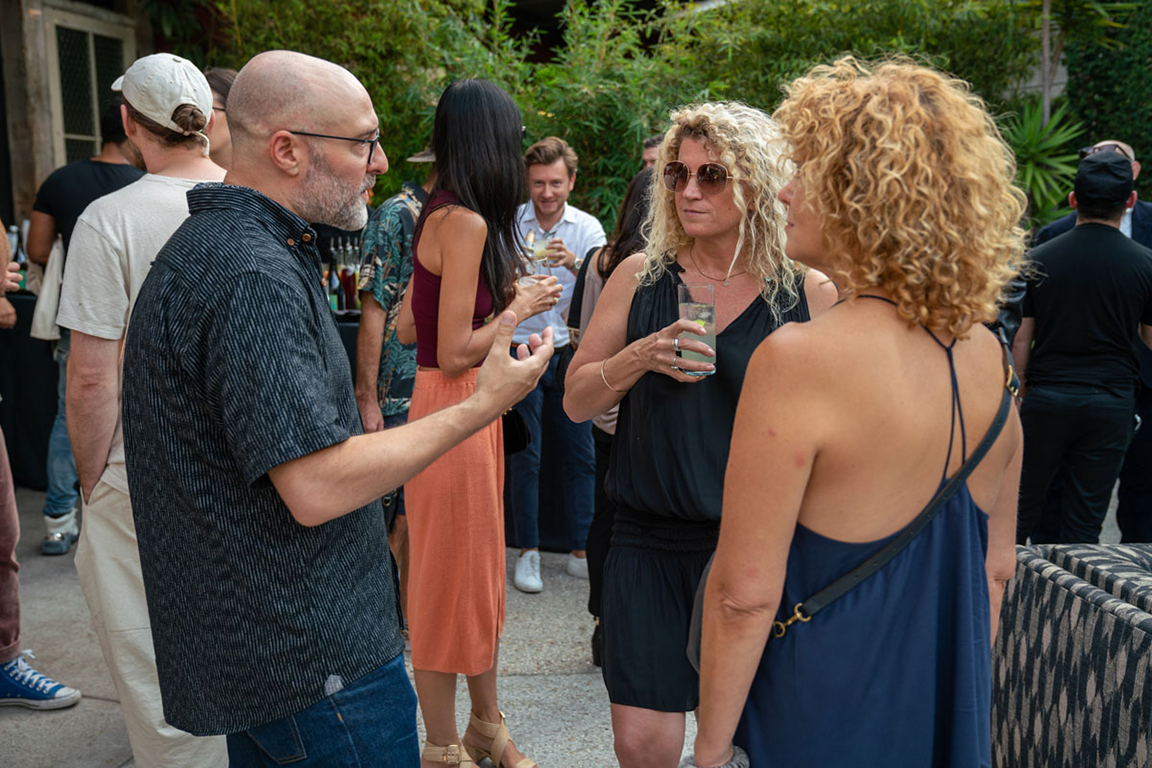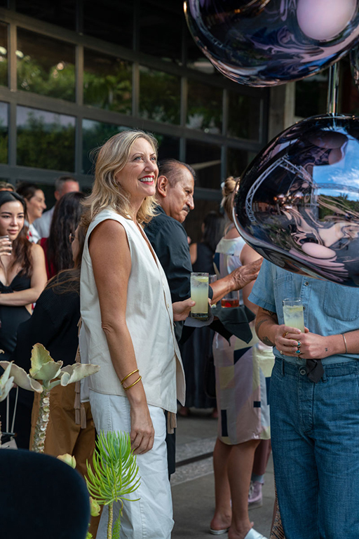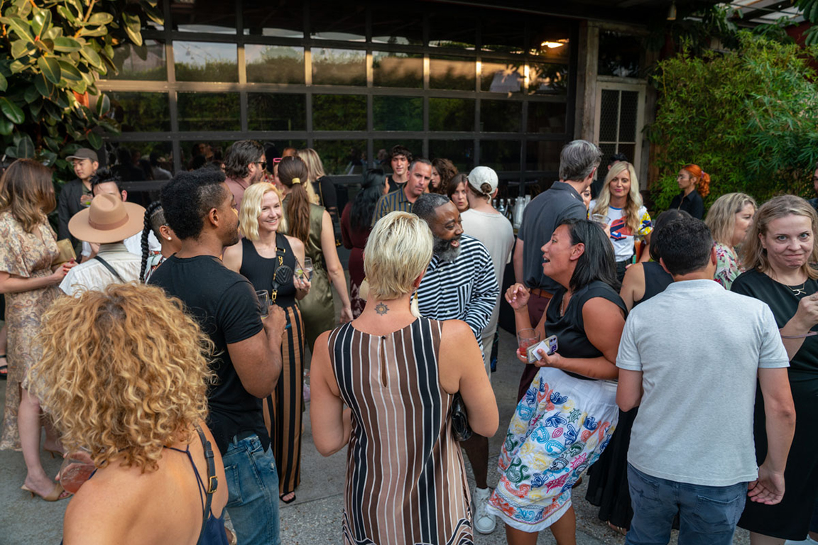 On the evening of Thursday September 8, a veritable who’s who of the Southern California A+D community gathered at the SmogShoppe in Los Angeles’ Culver City for evening hosted by Lumens in collaboration with Architectural Digest and Tom Dixon to celebrate 20 years of Tom Dixon Studio. Luscious greenery outfitted the LEED Platinum-Certified venue, powered entirely by solar panels, making for the perfect backdrop to the centerpiece displaying various Dixon furniture designs and three Melt pendants (including the Lumens exclusive in gold) suspended to eye level from a 20-foot tall structure giving guests an intimate look at his designs. The evening was capped off with a livestreamed conversation between Dixon and West Coast Editor of Architectural Digest, Mayer Rus.