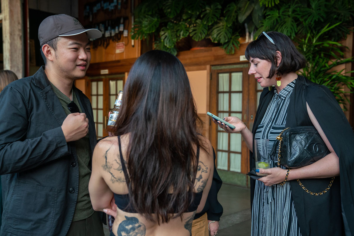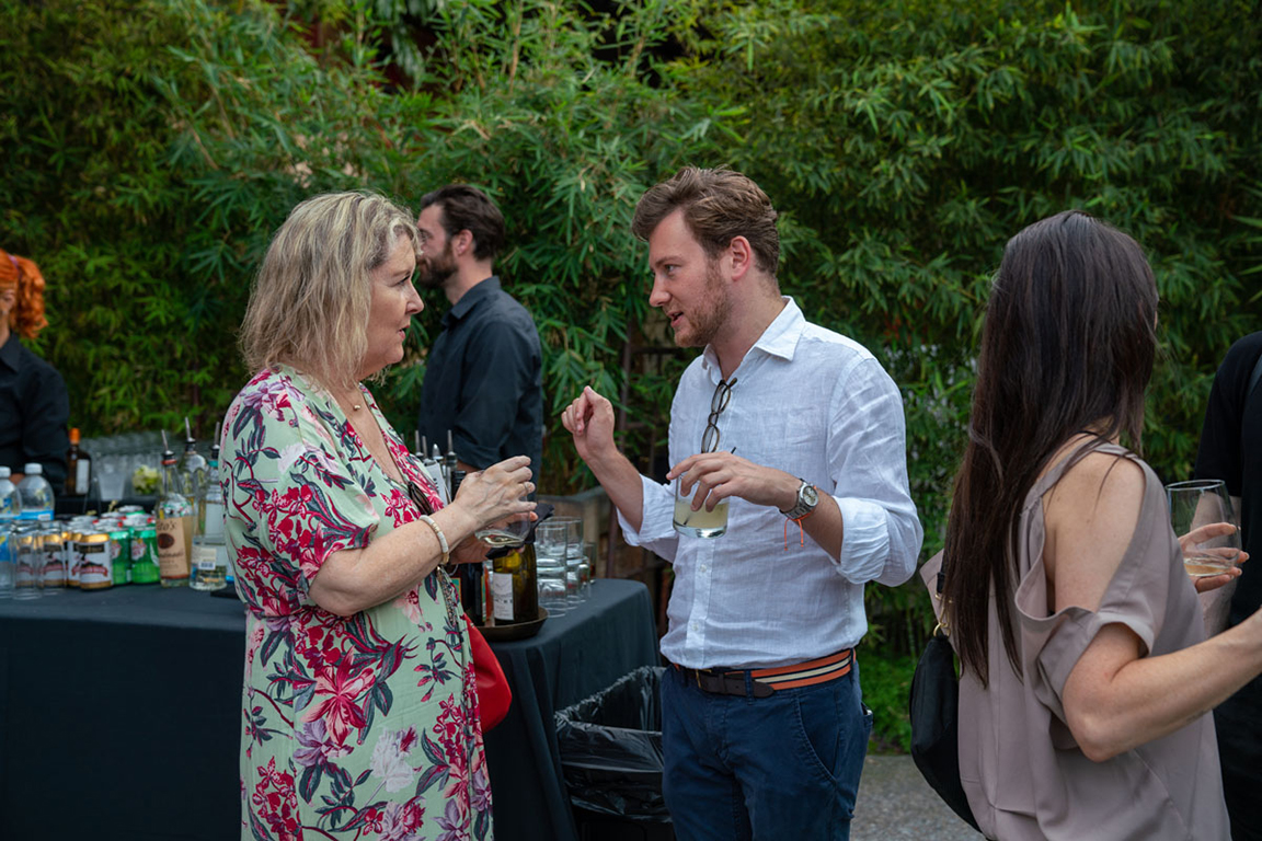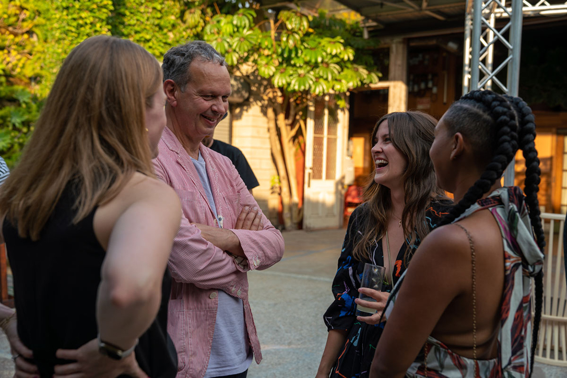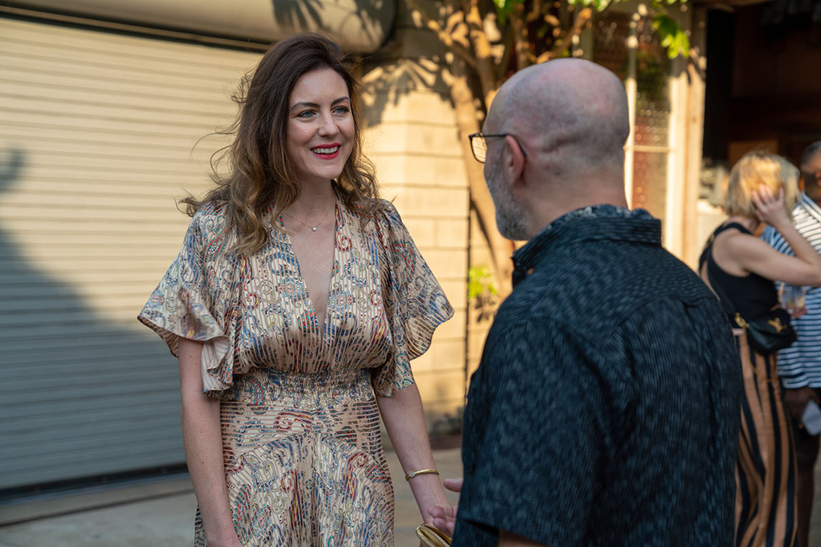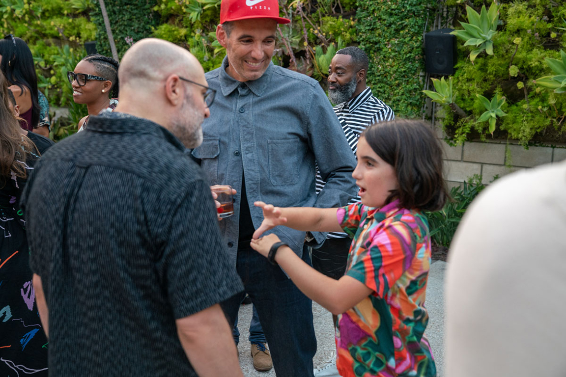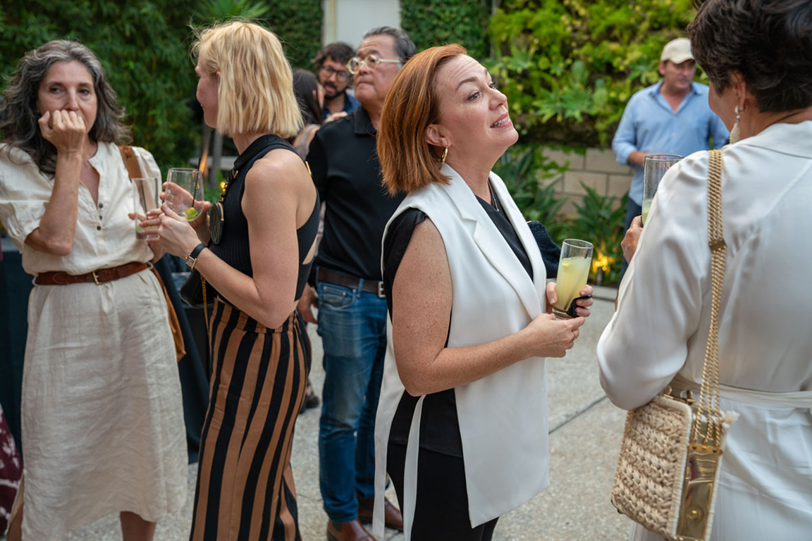 On the evening of Thursday September 8, a veritable who’s who of the Southern California A+D community gathered at the SmogShoppe in Los Angeles’ Culver City for evening hosted by Lumens in collaboration with Architectural Digest and Tom Dixon to celebrate 20 years of Tom Dixon Studio. Luscious greenery outfitted the LEED Platinum-Certified venue, powered entirely by solar panels, making for the perfect backdrop to the centerpiece displaying various Dixon furniture designs and three Melt pendants (including the Lumens exclusive in gold) suspended to eye level from a 20-foot tall structure giving guests an intimate look at his designs. The evening was capped off with a livestreamed conversation between Dixon and West Coast Editor of Architectural Digest, Mayer Rus.